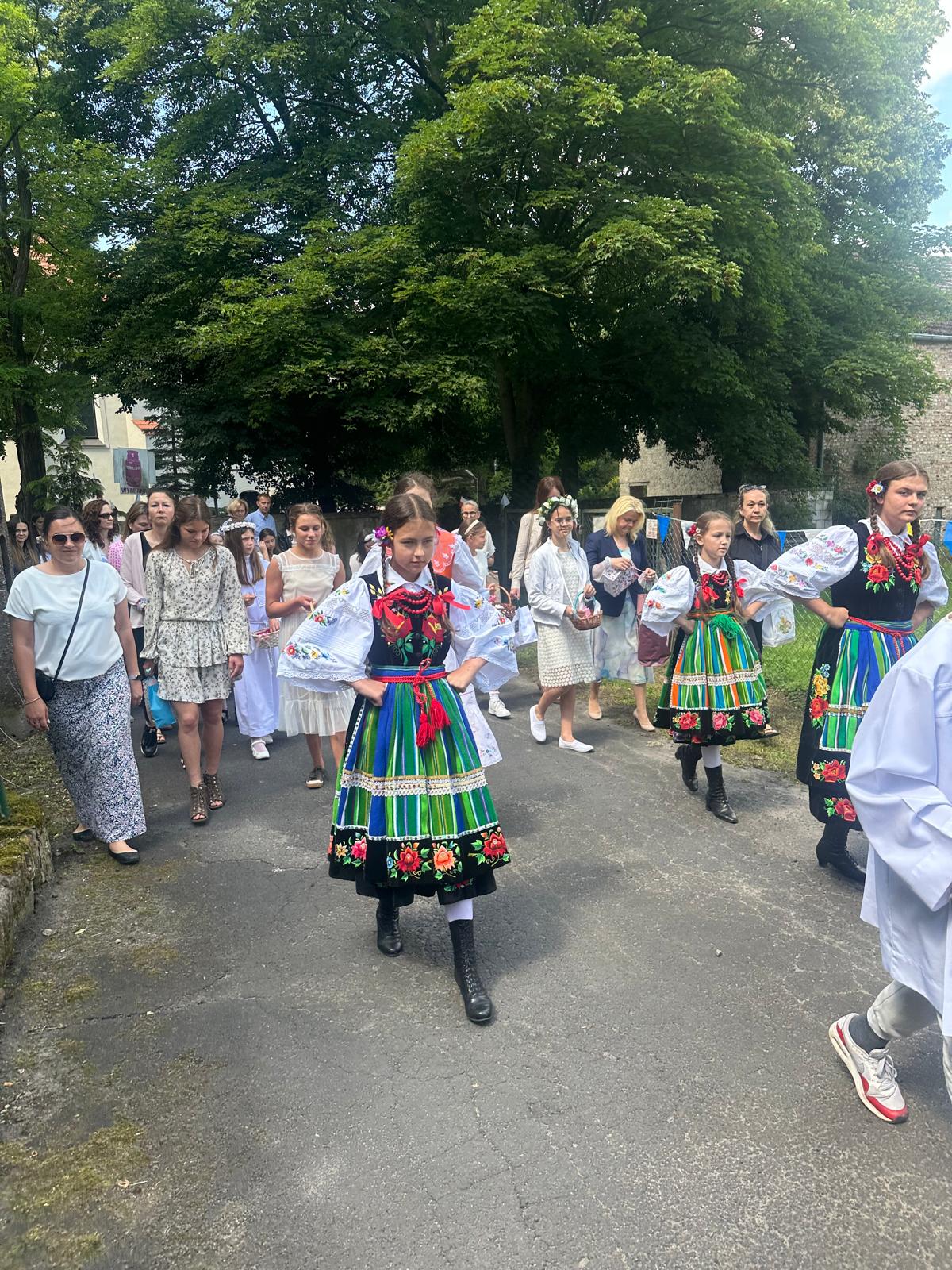 Boże Ciało 25 czerwca 2025 Jak co roku nasze dziewczyny z parafii w Sobocie wzięły udział w procesji Bożego Ciała w strojach ludowych. To już tradycja, że członkowie naszego Zespołu swoją obecnością uświetniają tą Uroczystość.