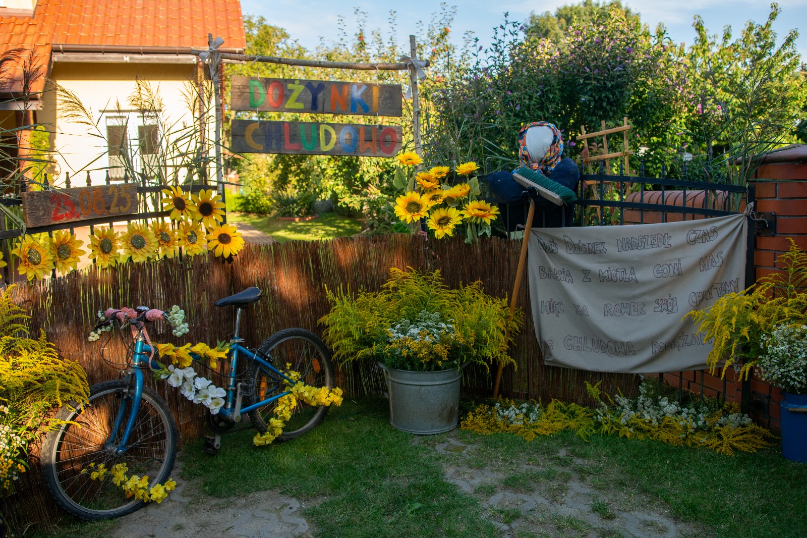 Dodatkową radością w tym roku był fakt, że nasi przedstawiciele, Marianna, Małgosia, Monika i Tymek przygotowali dekorację domu, która zajęła 1 miejsce w konkursie na najładniejszą dekorację dożynkową.