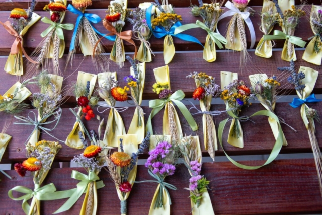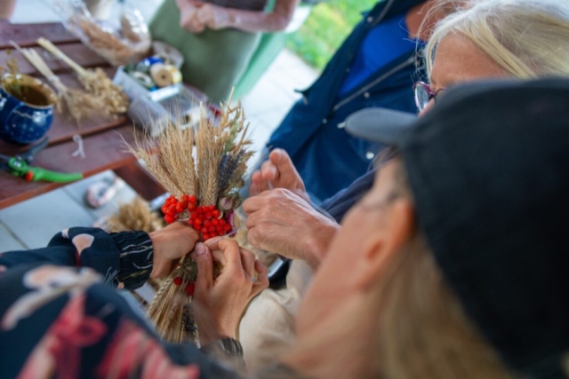 W ramach jubileuszowych spotkań, 22 sierpnia, zorganizowane zostały warsztaty wieńcowe, podczas których uczestnicy stworzyli ozdoby ze zboża i suszonych kwiatów. Dekoracje te, w formie kotylionów, zostały częściowo wykorzystane do udekorowania zacnych gości dożynkowych.