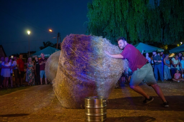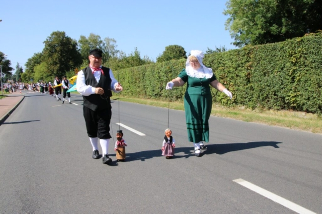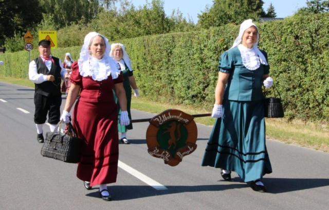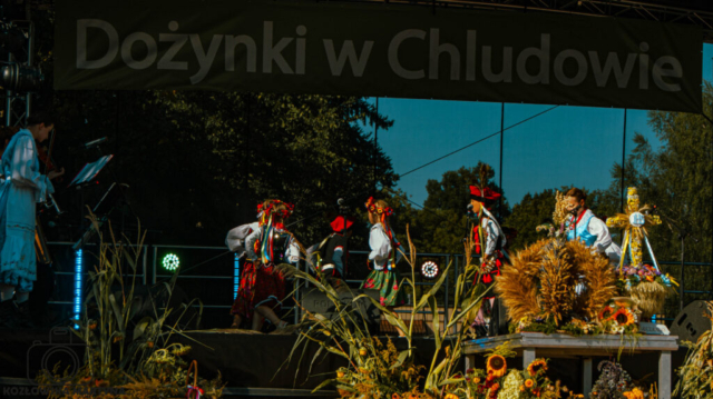 Chludowianie oraz gość specjalny – belgijski Zespół Reintje Vos wzięli udział w dziękczynnej mszy świętej, w uroczystym przemarszu na chludowski rynek oraz oczywiście w części artystycznej. Zebrani mieszkańcy i przybyli goście mogli zobaczyć obrzęd dożynkowy oraz występ młodszych grup ZPiT Chludowianie, a przede wszystkim, za sprawą Zespołu Reintje Vos, poznać szeroki wachlarz flamandzkich tańców tradycyjnych. Były tańce w parach, w układach, ale także wspaniałe tańce z flagami oraz na szczudłach. Tancerzom towarzyszyła kapela, która tworzyła harmonijną oprawę muzyczną występów. Po swoim pokazie tancerze zaprosili zgromadzonych do wspólnych tańców i udowodnili, że taniec łączy pokolenia bez względu na narodowość. Nasi wspaniali goście włączyli się także w pozostałe punktu programu i wzięli udział między innymi w tradycyjnym już konkursie turlania balotów, zajmując, mimo debiutu, wysokie, bo 2 miejsce.