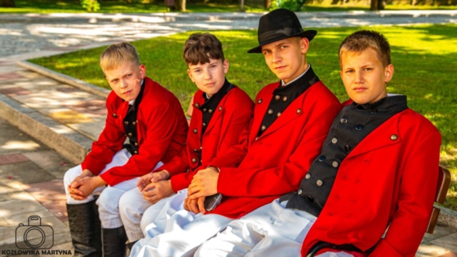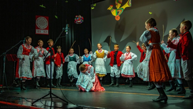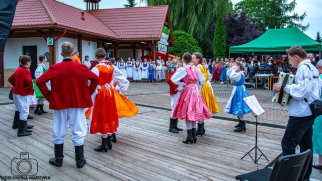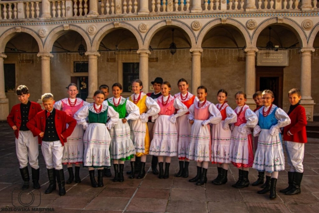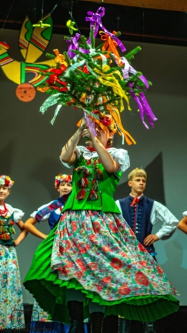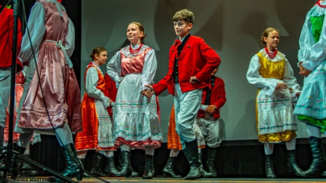 Po mszy żwawym krokiem ruszyliśmy na przesłuchania konkursowe. Na scenę wychodziliśmy z bijącymi, a raczej walącymi sercami, ale już pierwsze dźwięki naszych wielkopolskich melodii dodały nam otuchy i zatańczyliśmy najpiękniej jak umiemy, najpierw właśnie zabawy wielkopolskie, a zaraz po nich tańce i przyśpiewki śląskie.