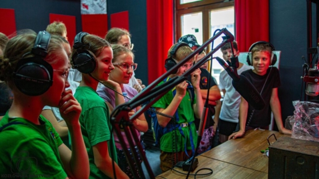 Po przesłuchaniach pędziliśmy do Muzeum Teatru Polskiego Radia, by posłuchać i zobaczyć jak tworzy się słuchowiska i dźwięki. Po muzeum wróciliśmy jeszcze na salę przesłuchań, by zerknąć na inne zespoły, które występy festiwalowe miały ciągle przed sobą. Szybki obiad i znowu wskoczyliśmy w stroje wielkopolskie, by razem z innymi uczestnikami, już teraz bez stresu, wystąpić przed zgromadzoną na rynku publicznością. Nasze panny w kopkach biskupiańskich robiły prawdziwą furorę wśród zebranych widzów i będą chyba na wszystkich zdjęciach!