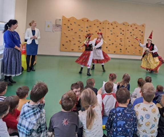 W grudniu zakończyliśmy nasze spotkania z przedszkolakami, które odbywały się w ramach zadania publicznego „Folklor w przedszkolu – czyli przedszkolaki poznają polskie tańce narodowe”. Przez 3 miesiące zrealizowaliśmy 18 audycji, w 4 przedszkolach naszej gminy. W sumie wzięło w nich udział ponad 300 przedszkolaków. Pokazaliśmy najmłodszym mieszkańcom naszej gminy 5 tańców narodowych: poloneza, mazura, oberka, kujawiaka i krakowiaka. Podczas naszych spotkań dzieci mogły, nie tylko obejrzeć tańce, ale także zobaczyć stroje, poznać Lajkonika, czy zatańczyć z nami poloneza i krakowiaka.