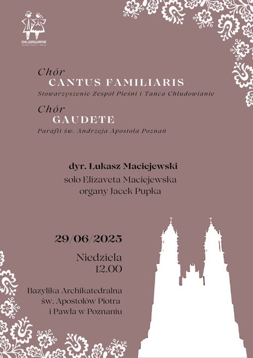 W niedzielę 29 czerwca, w uroczystość św. Apostołów Piotra i Pawła działający przy naszym stowarzyszeniu chór Cantus Familiaris zaśpiewa w poznańskiej katedrze. Serdecznie zapraszamy o na koncert o godz. 12:00 oraz mszę świętą o godz. 12:15.