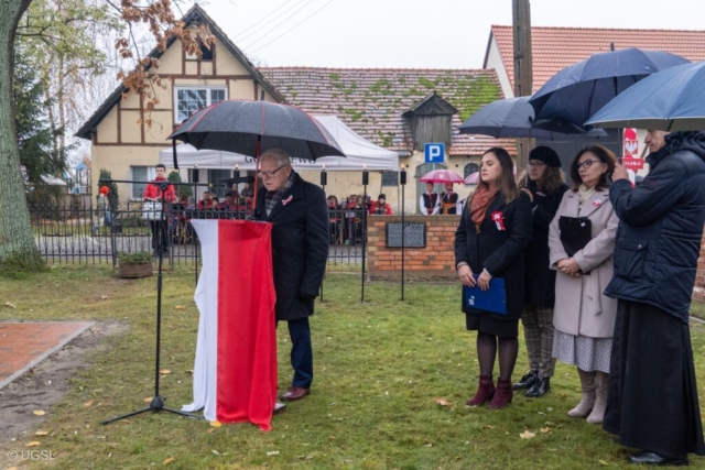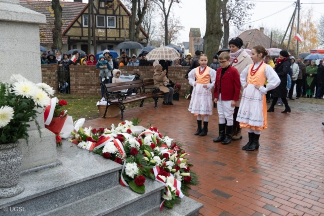 W dniu 11 listopada spotkaliśmy się, jak co roku, na gminnych obchodach Święta Niepodległości w Golęczewie, pod figurą NMP Królowej Korony Polskiej. Nasza delegacja składająca się z najmłodszych tancerzy, razem z panią Prezes złożyła wiązankę kwiatów, natomiast chór grupy młodzieży młodszej towarzyszył zebranym swoim śpiewem. Był to kolejny raz gdy mieliśmy przyjemność wystąpić razem z Orkiestrą Dętą z Chludowa.