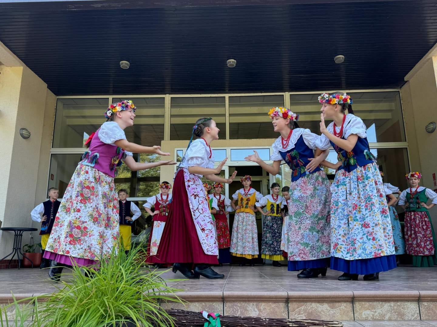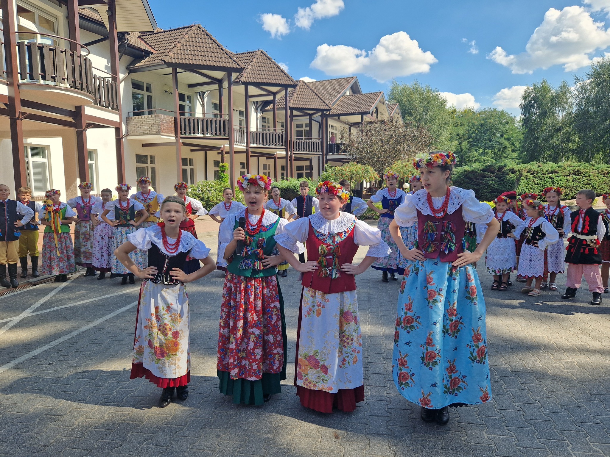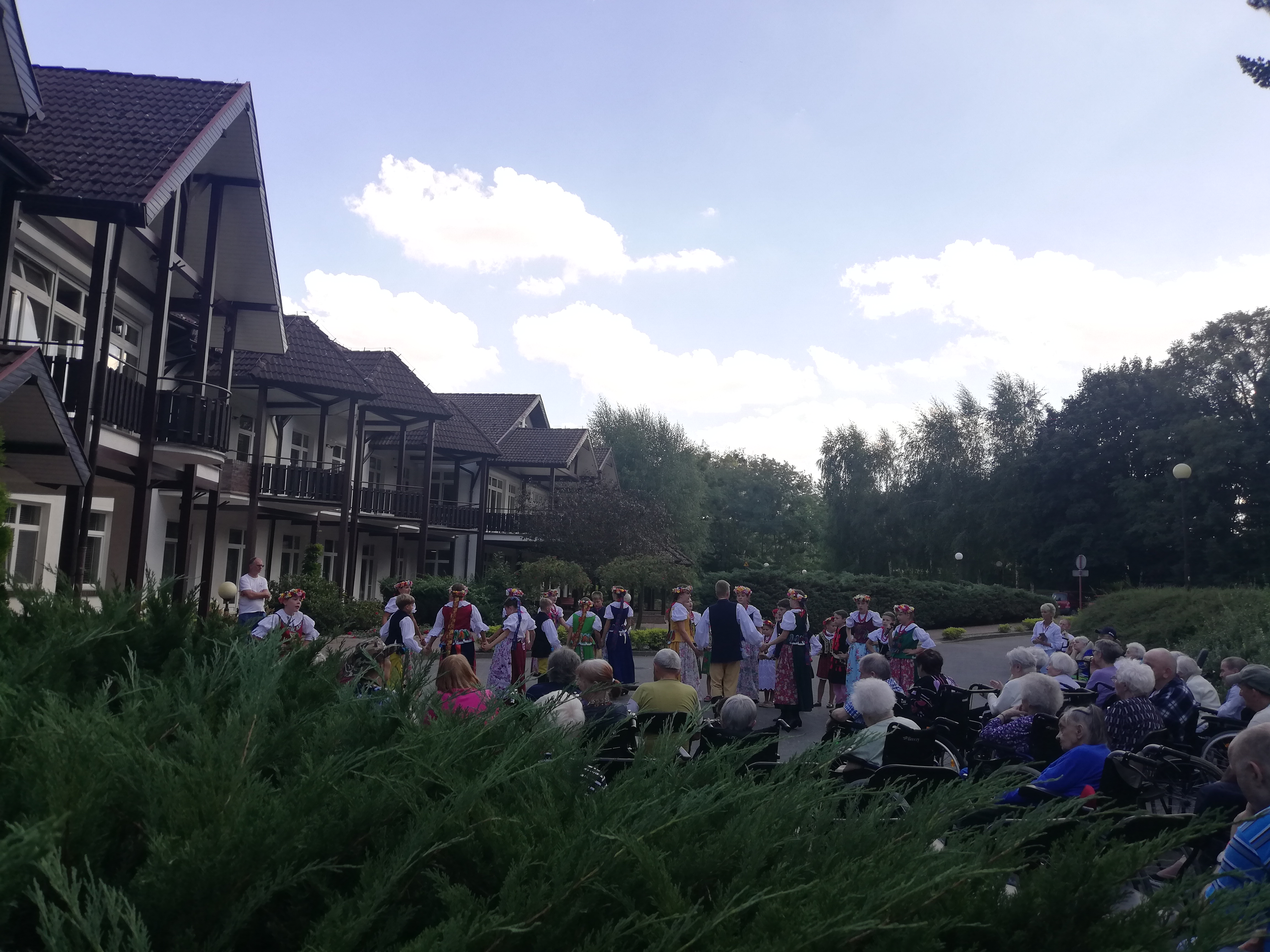Kulminacyjnym momentem obozu były koncerty. Początkowo planowane były dwa, ale życie lubi zaskakiwać i ostatecznie zaprezentowaliśmy 4 występy: dwa dla mieszkańców okolicznych Domów Opieki, jeden dla parafian i gości, po świątecznej mszy 15 sierpnia i ostatni dla gości hotelu, w którym mieszkaliśmy. Wszystkie pokazy spotkały się z wielkim uznaniem i życzliwością, a nasi tancerze wykazali się ogromnym profesjonalizmem i wytrwałością, bo trzeba zaznaczyć, że upał był w tych dniach okropny.