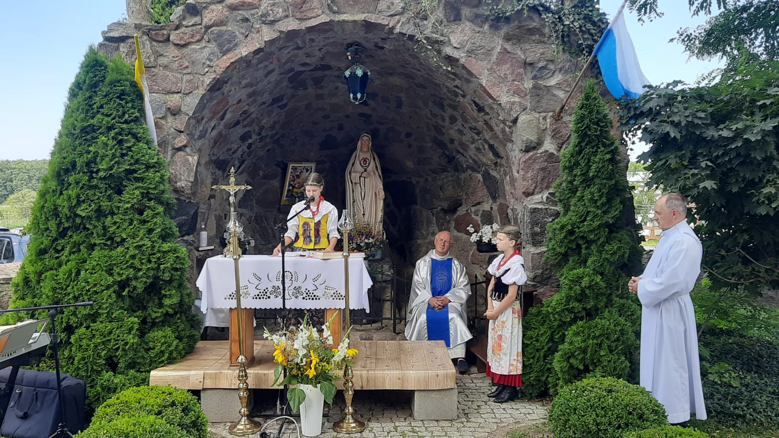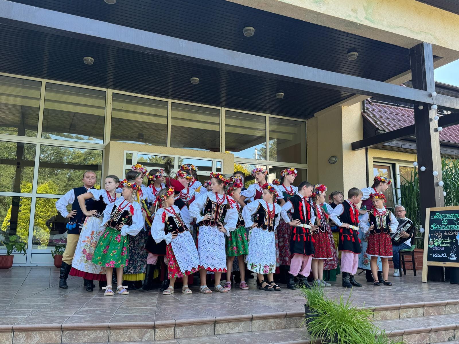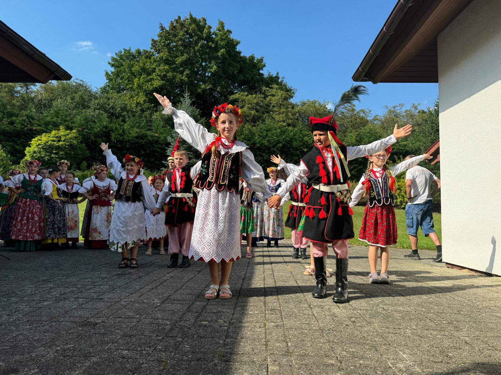 Kulminacyjnym momentem obozu były koncerty. Początkowo planowane były dwa, ale życie lubi zaskakiwać i ostatecznie zaprezentowaliśmy 4 występy: dwa dla mieszkańców okolicznych Domów Opieki, jeden dla parafian i gości, po świątecznej mszy 15 sierpnia i ostatni dla gości hotelu, w którym mieszkaliśmy. Wszystkie pokazy spotkały się z wielkim uznaniem i życzliwością, a nasi tancerze wykazali się ogromnym profesjonalizmem i wytrwałością, bo trzeba zaznaczyć, że upał był w tych dniach okropny.