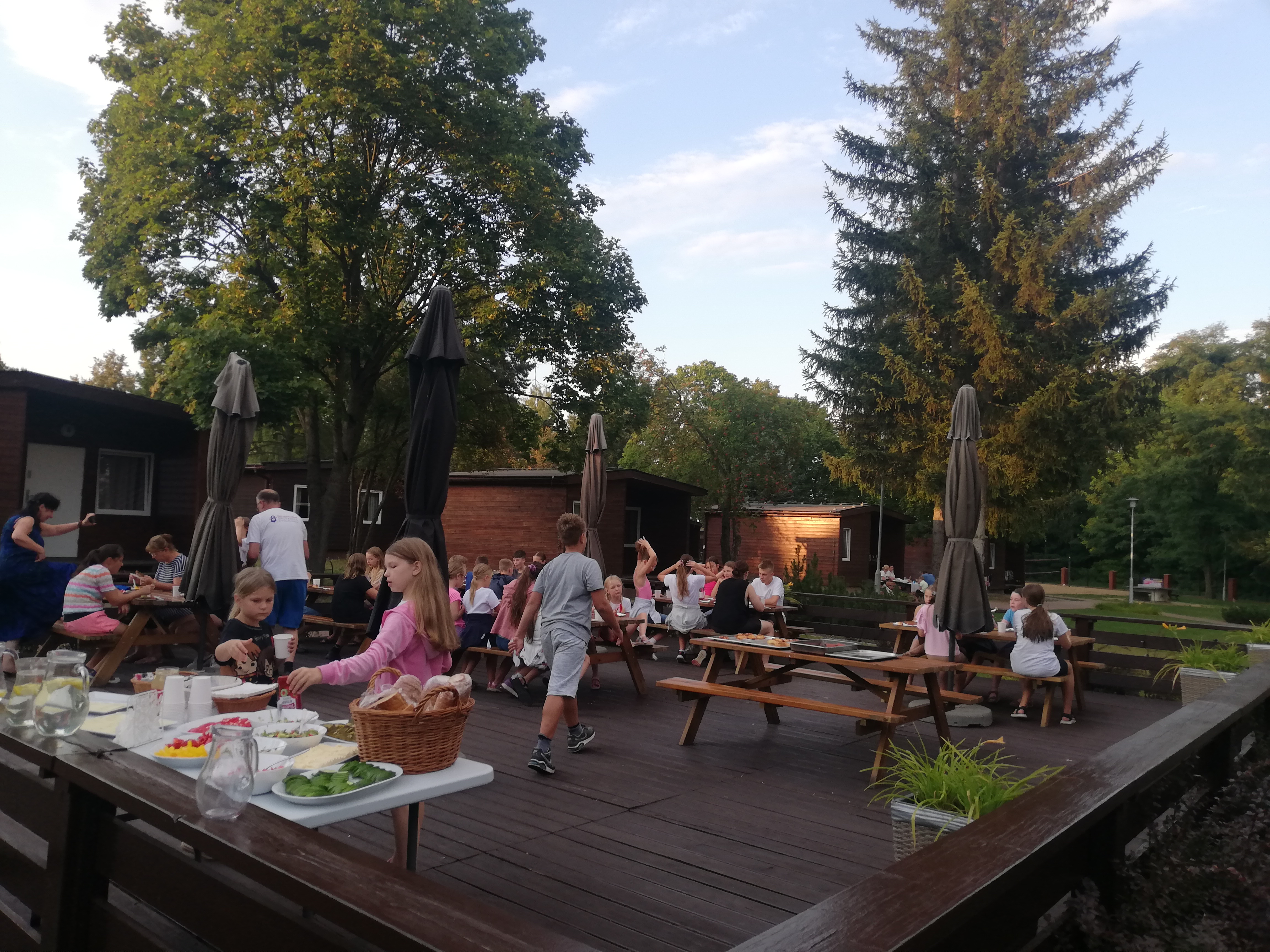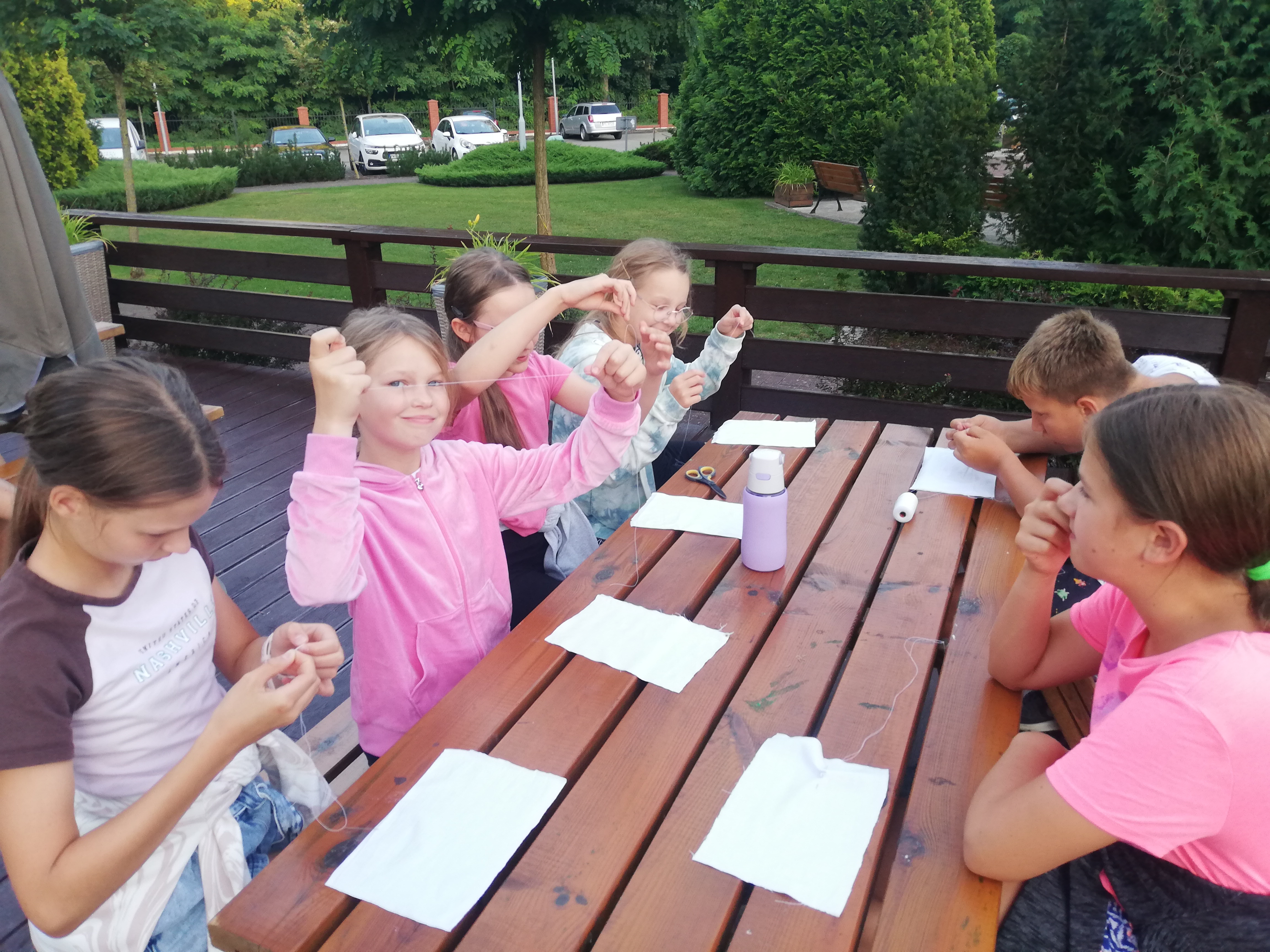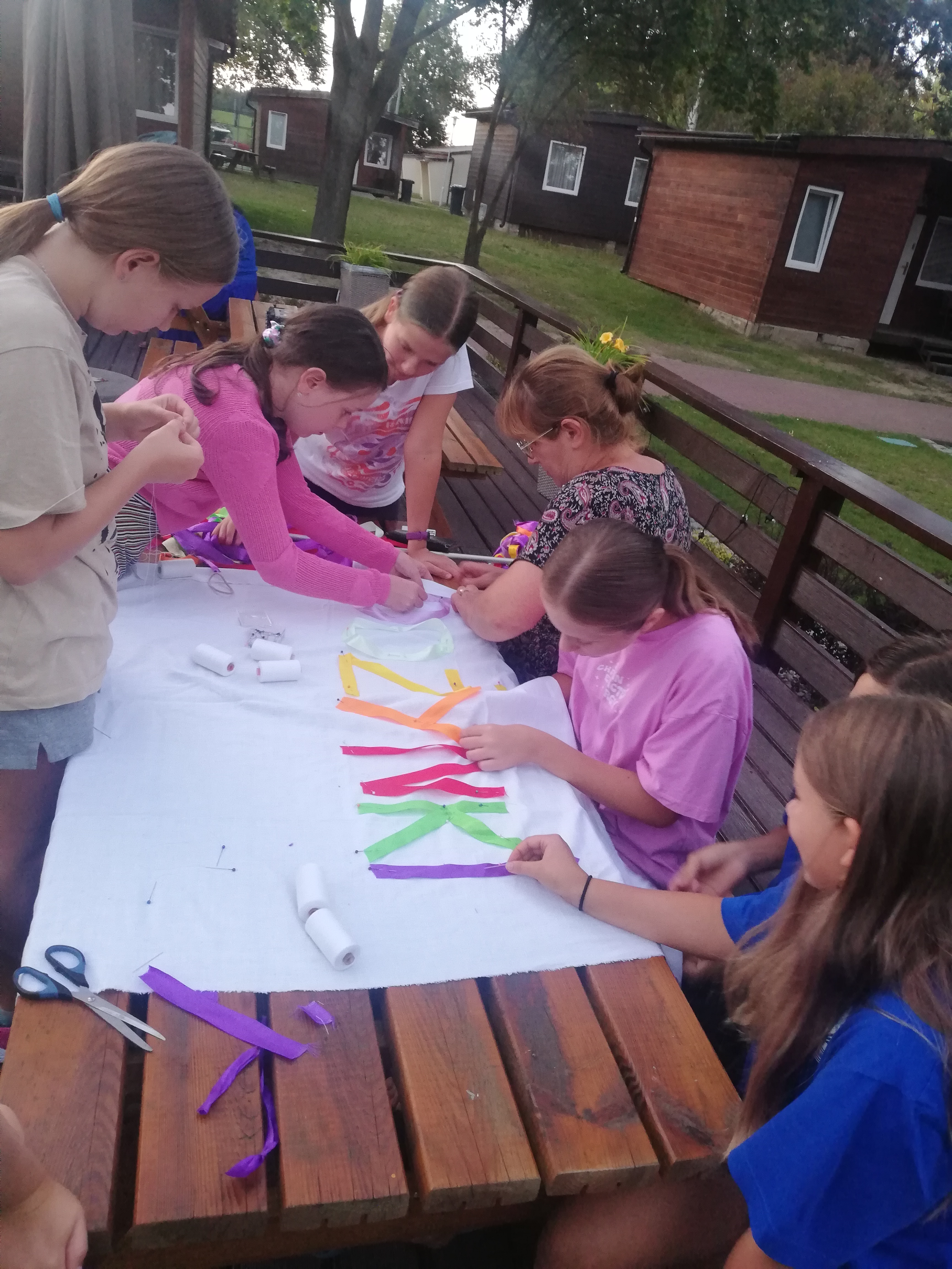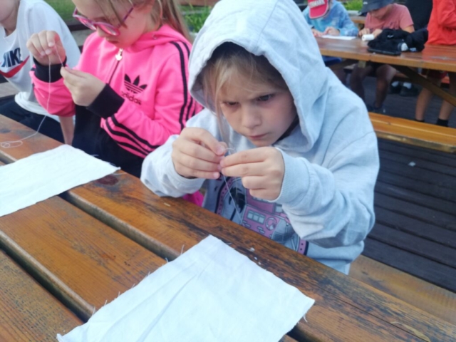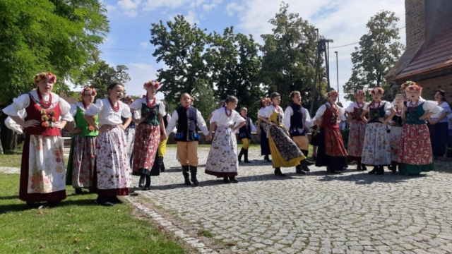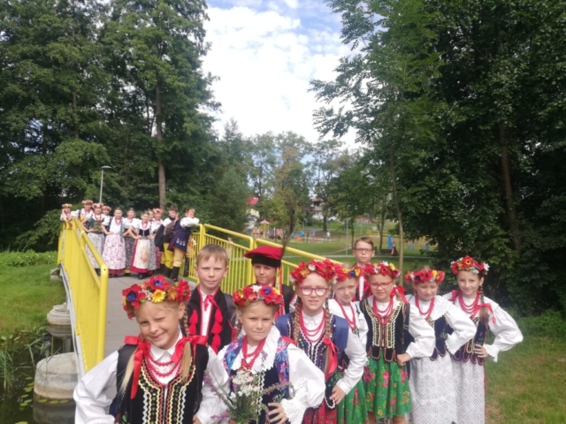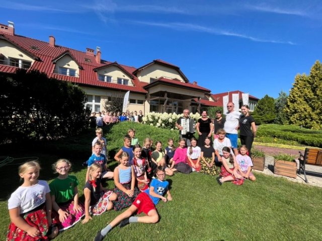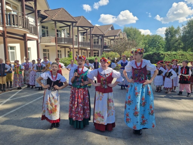 Podczas tygodniowego pobytu w tym urokliwym miejscu uczyliśmy się nowych kroków, piosenek i układów. Oprócz ciężkiej pracy był oczywiście czas na kąpiele w jeziorze i basenie, na prace plastyczne oraz na rozmowy i wspólne zabawy. Zdobyliśmy cenną dla tancerza umiejętność przyszywania guzików oraz przygotowaliśmy elementy do dekoracji bab dożynkowych.