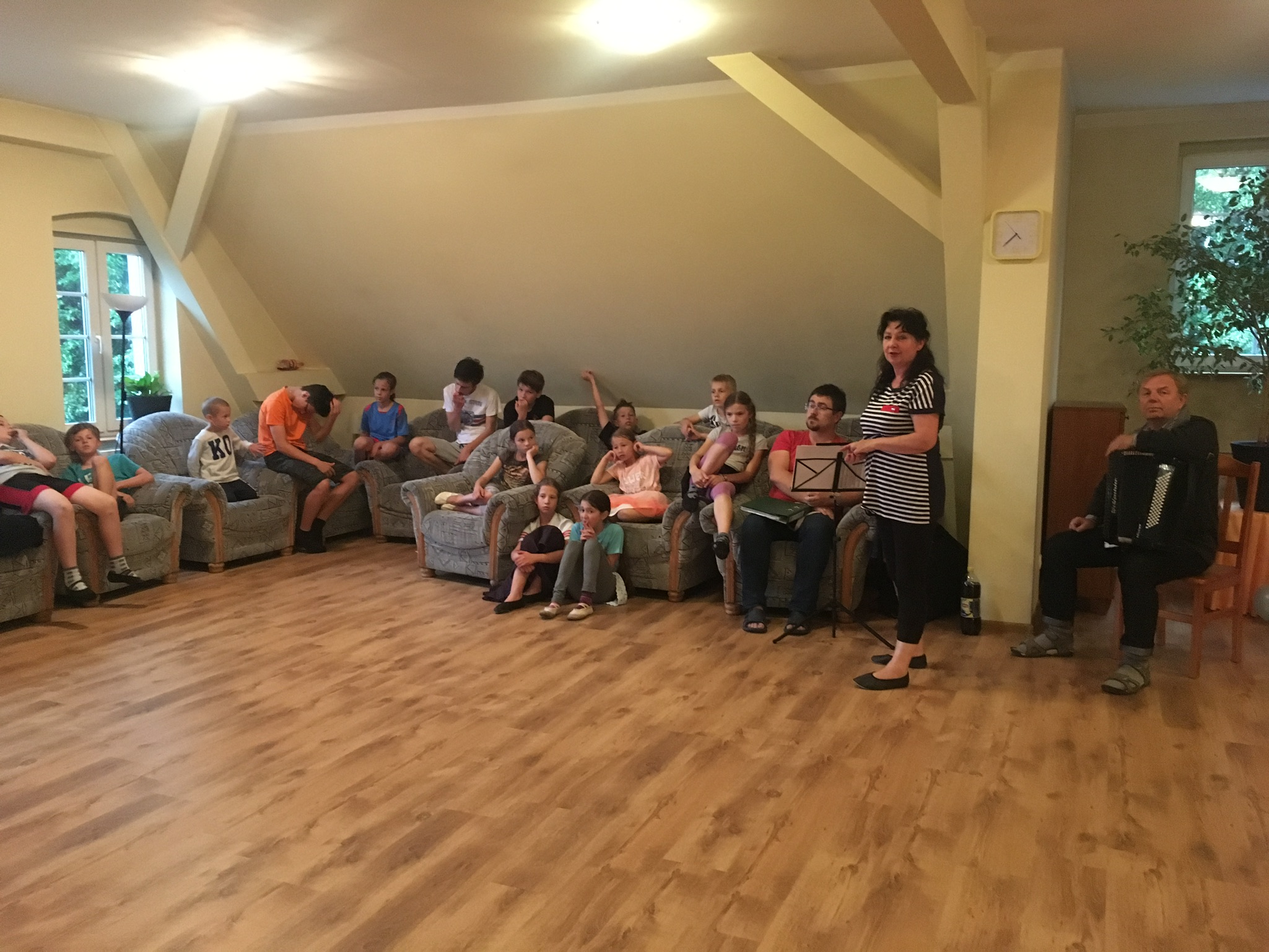 W pierwszym tygodniu wakacji dwie grupy tancerzy – średnia i najmłodsza – przebywały na obozie wypoczynkowym w Ząbkowicach Śląskich. Był to czas wypoczynku, zwiedzania, zabawy, ale przede wszystkim pracy! Dzieci codziennie uczestniczyły w zajęciach tanecznych i wokalnych. Pogoda nie rozpieszczała, ale nie szkodzi – lepiej się ćwiczyło podczas deszczu! Na szczęście w dniu zaplanowanej wycieczki do odległej Pragi pogoda była piękna. Chludowian po tym pięknym mieście oprowadził przewodnik. Innego dnia tancerze wybrali się na zwiedzanie kopalni złota z Złotym Stoku. Nie udało sie wprawdzie odnaleźć cennego kruszcu, ale Chludowianie wiedzą już, że przyjaźń jest cenniejsza niż złoto!