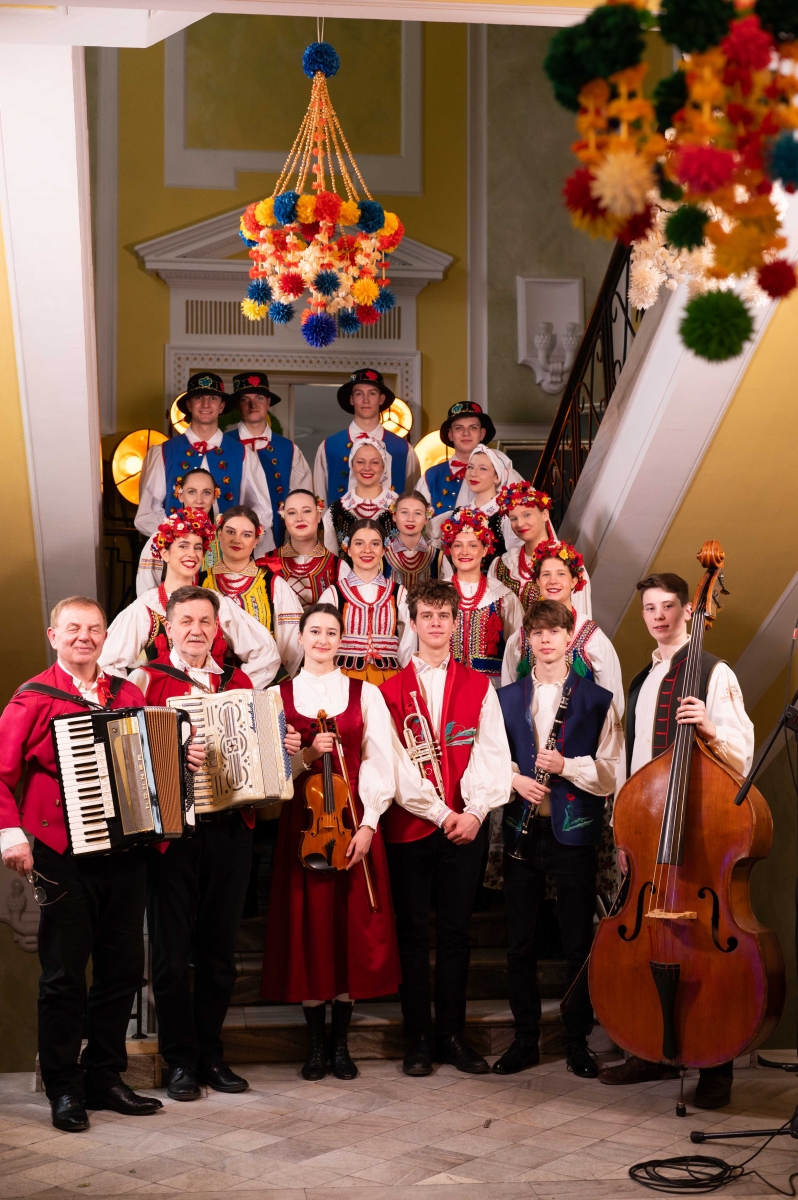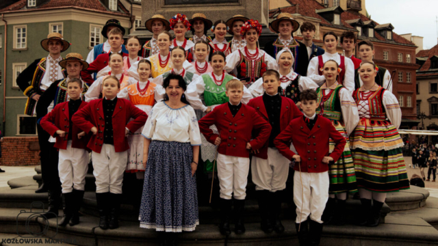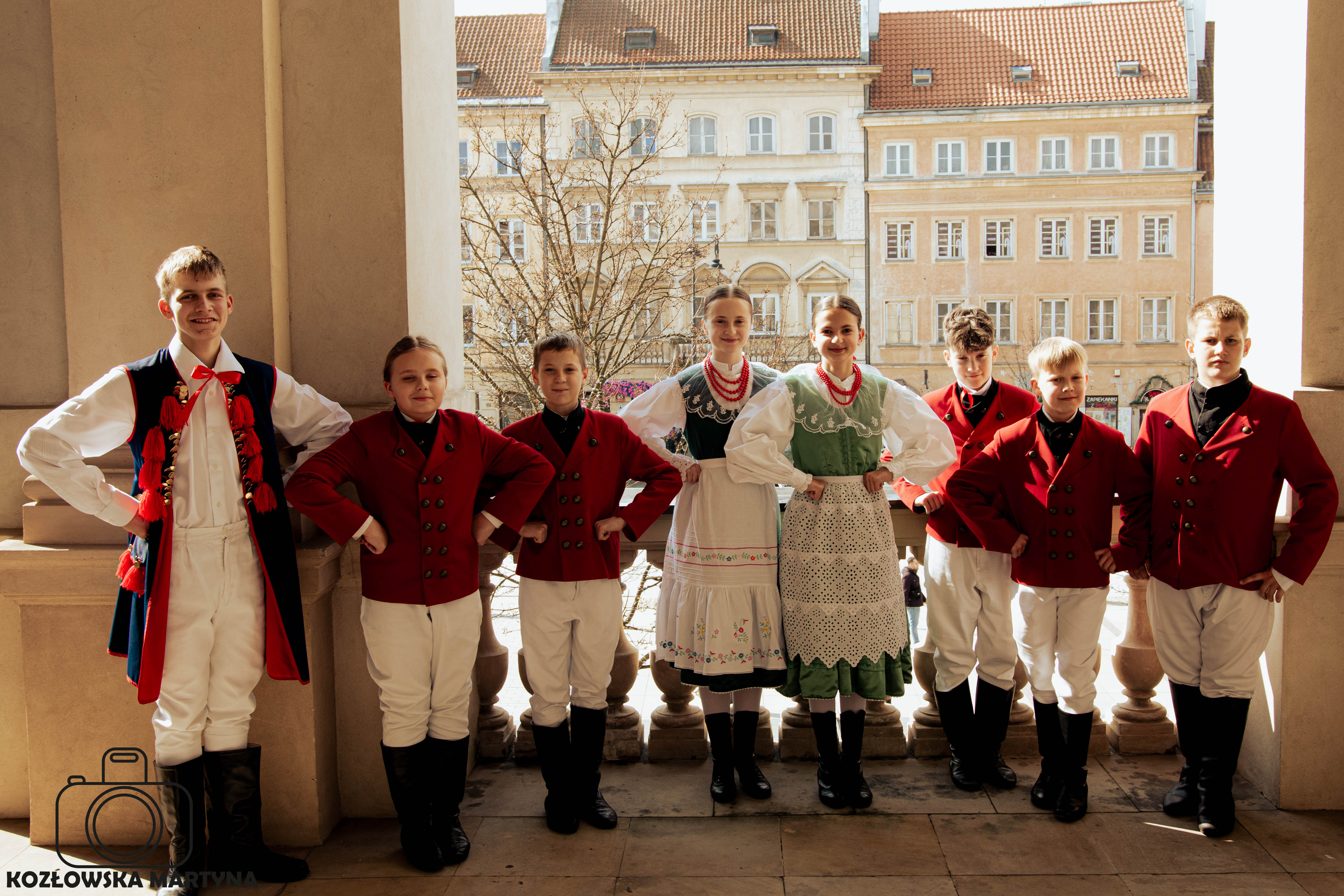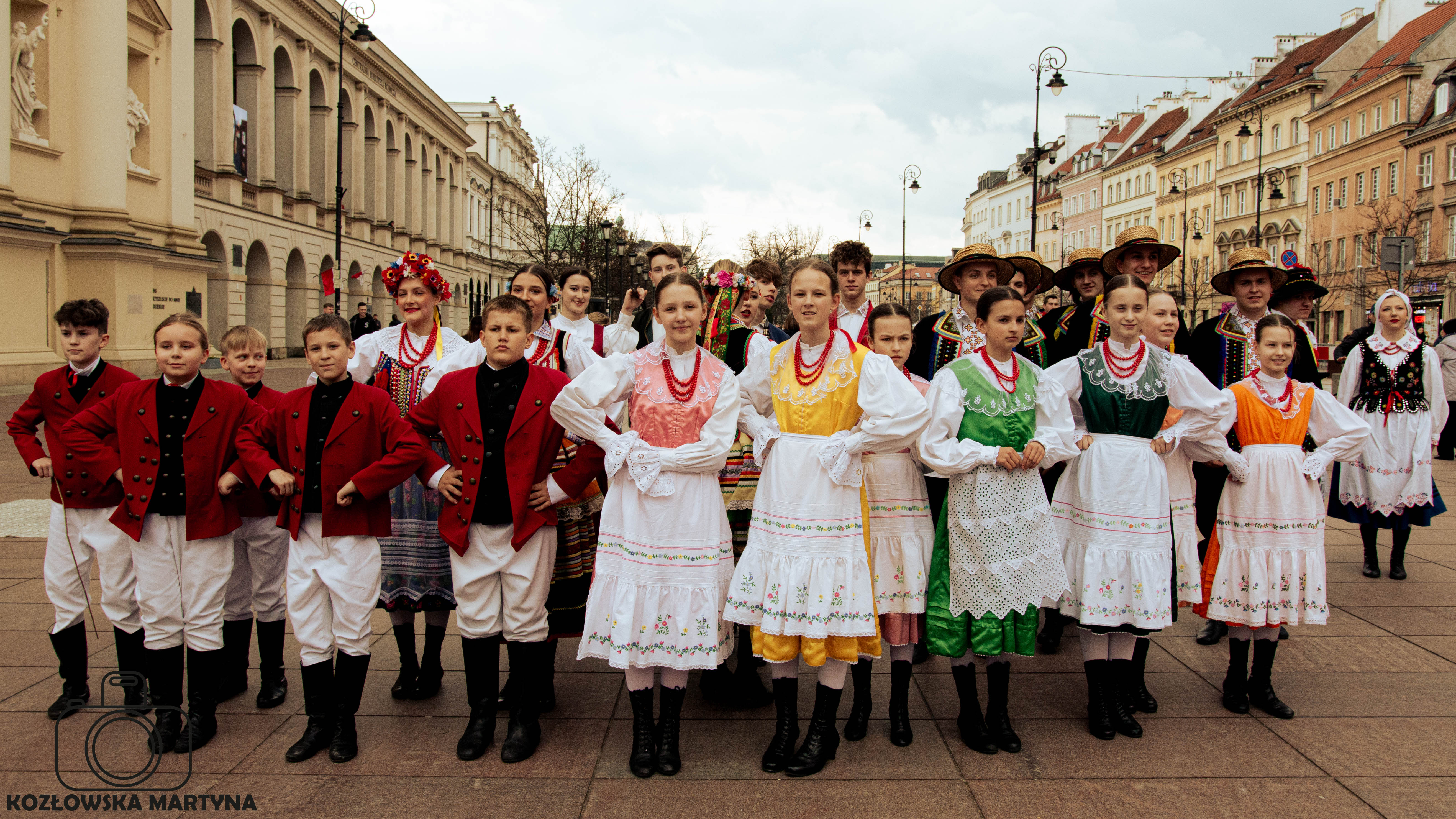 W Warszawie przywitała nas brzydka pogoda, ale rozgoniliśmy chmury tańcem, śpiewem oraz wspaniałymi nastrojami i strojami z różnych regionów Polski. W stolicy pokazaliśmy oberka, krakowiaka, tańce rzeszowskie i lubelskie w wykonaniu grupy podstawowej oraz tańce śląskie i zabawy wielkopolskie w wykonaniu grupy Koniczynek. O oprawę muzyczną zadbała nasza niezastąpiona kapela. Po 8 godzinach występów, zmęczeni, ale szczęśliwi wróciliśmy do hotelu, by trochę odpocząć, bo następnego dnia czekało nas zwiedzanie Warszawy. Pomimo niesprzyjającej pogody, wybraliśmy się na poranną mszę do kościoła i oglądanie najważniejszych zabytków stolicy. Nasz zespół zawitał na Krakowskim Przedmieściu, zameldowaliśmy się także pod warszawską Syrenką, a nawet dopingowaliśmy osoby biegnące w 18. Półmaratonie. Zdjęcie pod Pałacem Kultury, także zostało zrobione. Zaczerpnęliśmy nieco warszawskiego powietrza i poznaliśmy uroki tego miasta. Niestety trzeba było wracać i zakończyć ten wspaniały wyjazd. Nam ciągle jednak mało, dlatego ruszamy dalej na podbój Polski, by szerzyć unikalność i urok naszej polskiej kultury.