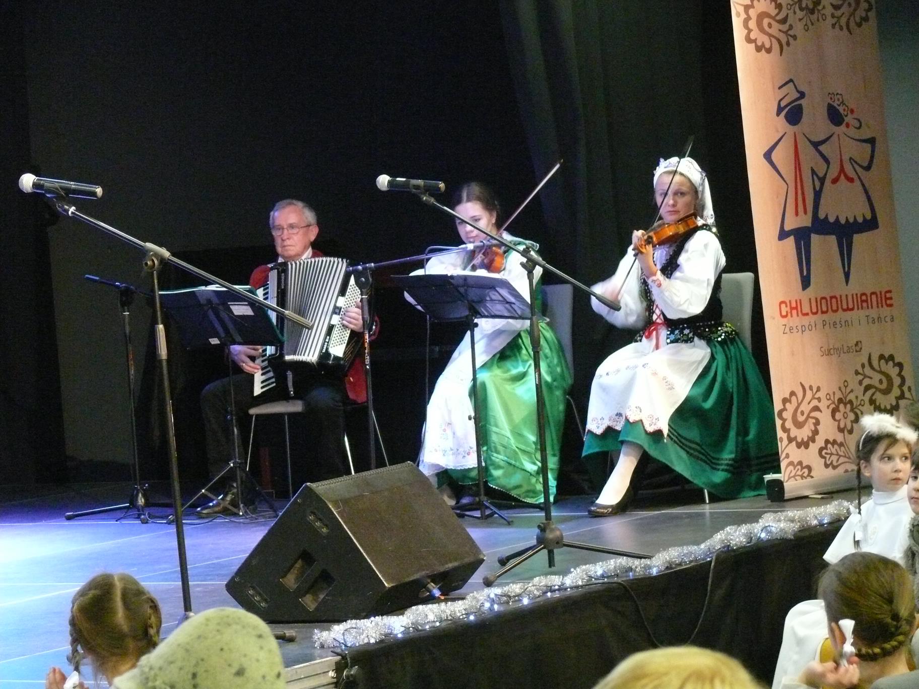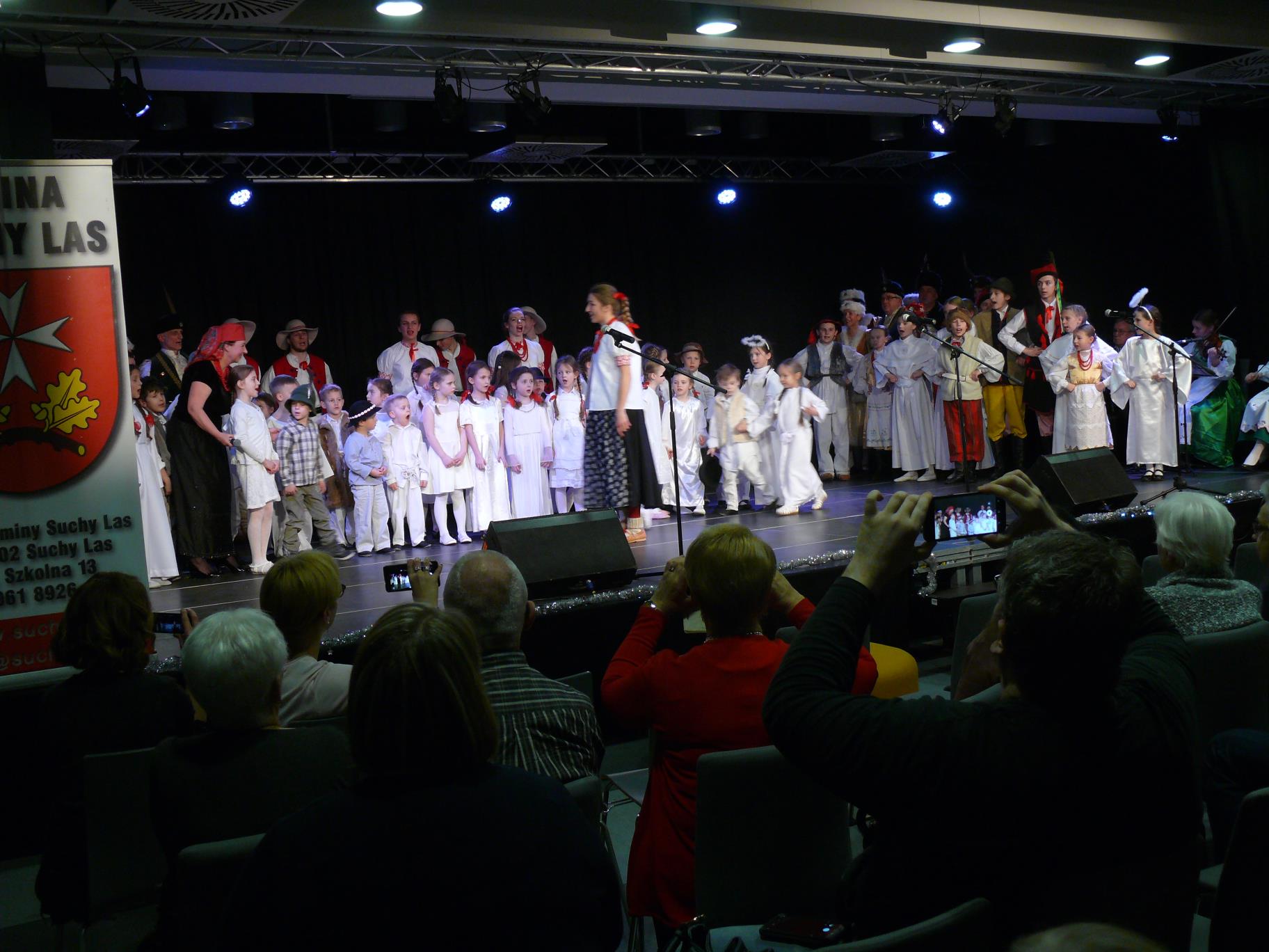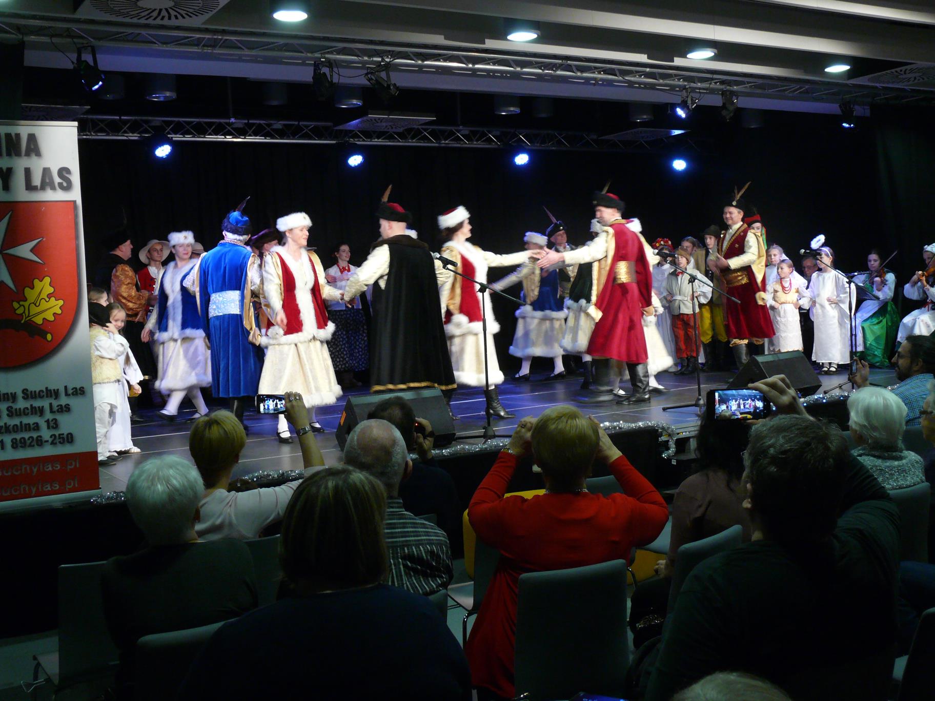 Za na mi bardzo intensywny weekend. Aby tradycji stało się zadość, również w tym roku, zorganizowaliśmy nasze rodzinne kolędowanie. W minioną sobotę, 27 stycznia, wszystkie grupy tancerzy Zespołu Pieśni i Tańca „Chludowianie” oraz chór Cantus Familiaris wystąpiły na scenie Ośrodka Kultury w Suchym Lesie. Nasza zespołowa rodzina rozrasta się do takich rozmiarów, że tylko sala widowiskowa w Ośrodku Kultury mogła nas pomieścić. Na widowni zasiedli najwierniejsi nasi fani – rodziny, znajomi i przyjaciele. Spotkanie mijało w radosnej i rodzinnej atmosferze i było pięknym uwieńczeniem całego okresu bożonarodzeniowego. Ogromne wzruszenie na twarzach widzów wywołała szczególnie najmłodsza grupa tancerzy. Dla naszych „maluchów” był to pierwszy taki występ. Dzięki intensywnym przygotowaniom, świetnie dali sobie radę. Serdecznie dziękujemy osobom, które włączyły się w organizację tego wydarzenia.