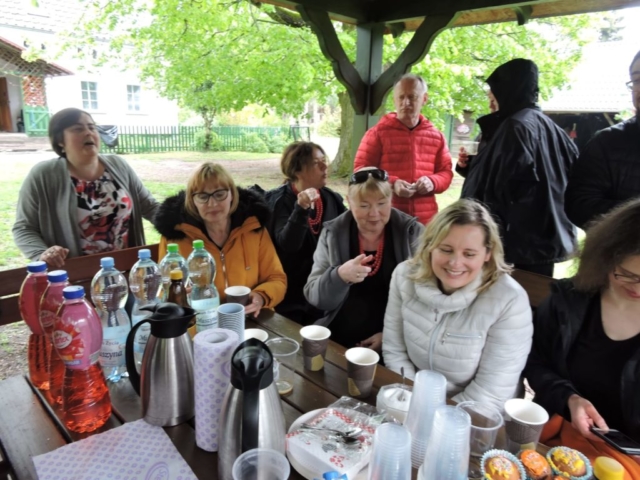 W niedziele po porannej próbie wyruszyliśmy do Borui Kościelnej. Tam, po raz drugi podczas tego warsztatowego weekendu, wzięliśmy udział w nabożeństwie majowym, po którym również mieliśmy okazję zaśpiewać kilka utworów dla zebranych osób. Przelotny deszcz nie wystraszył ani chórzystów, ani słuchaczy.