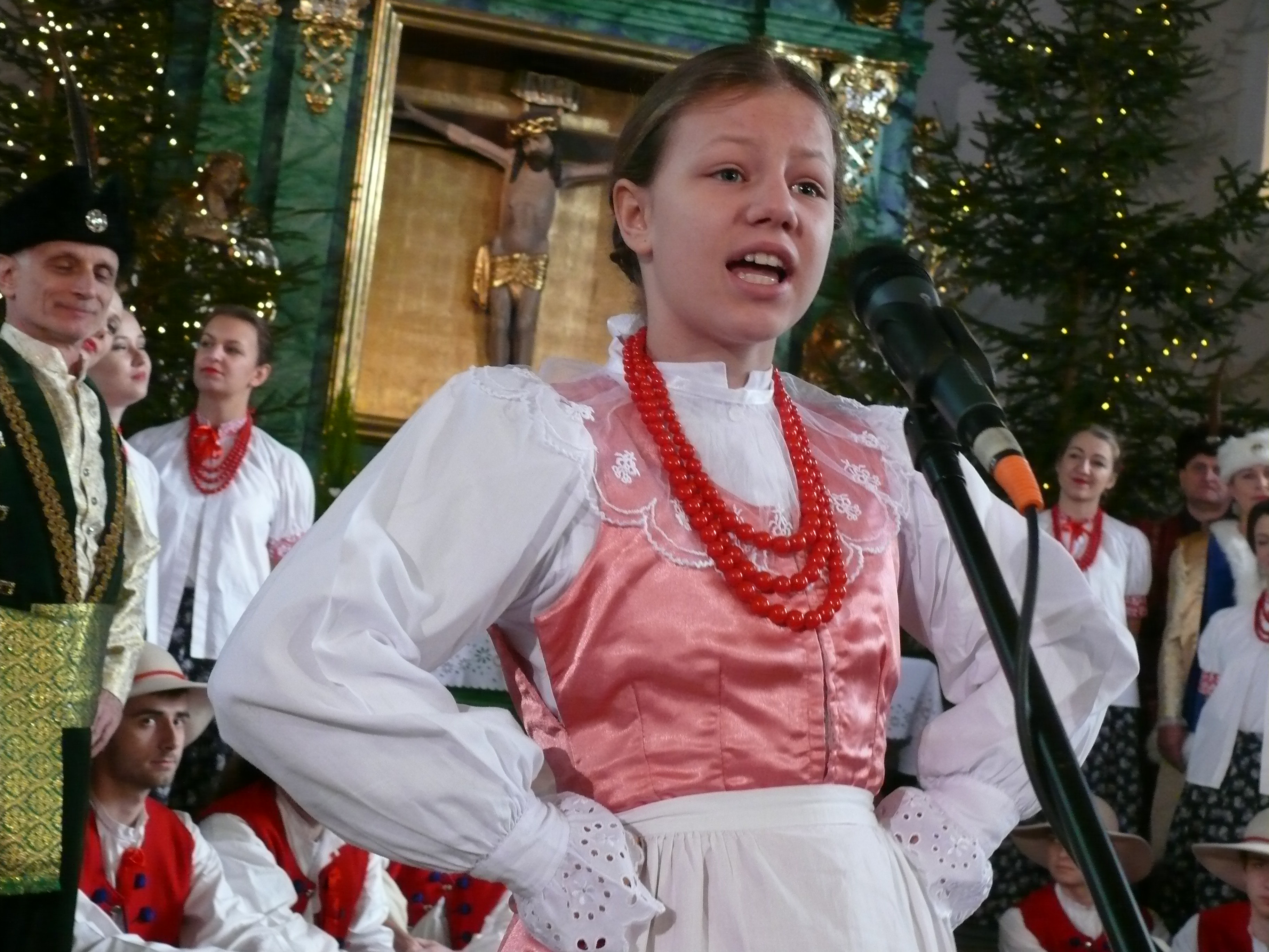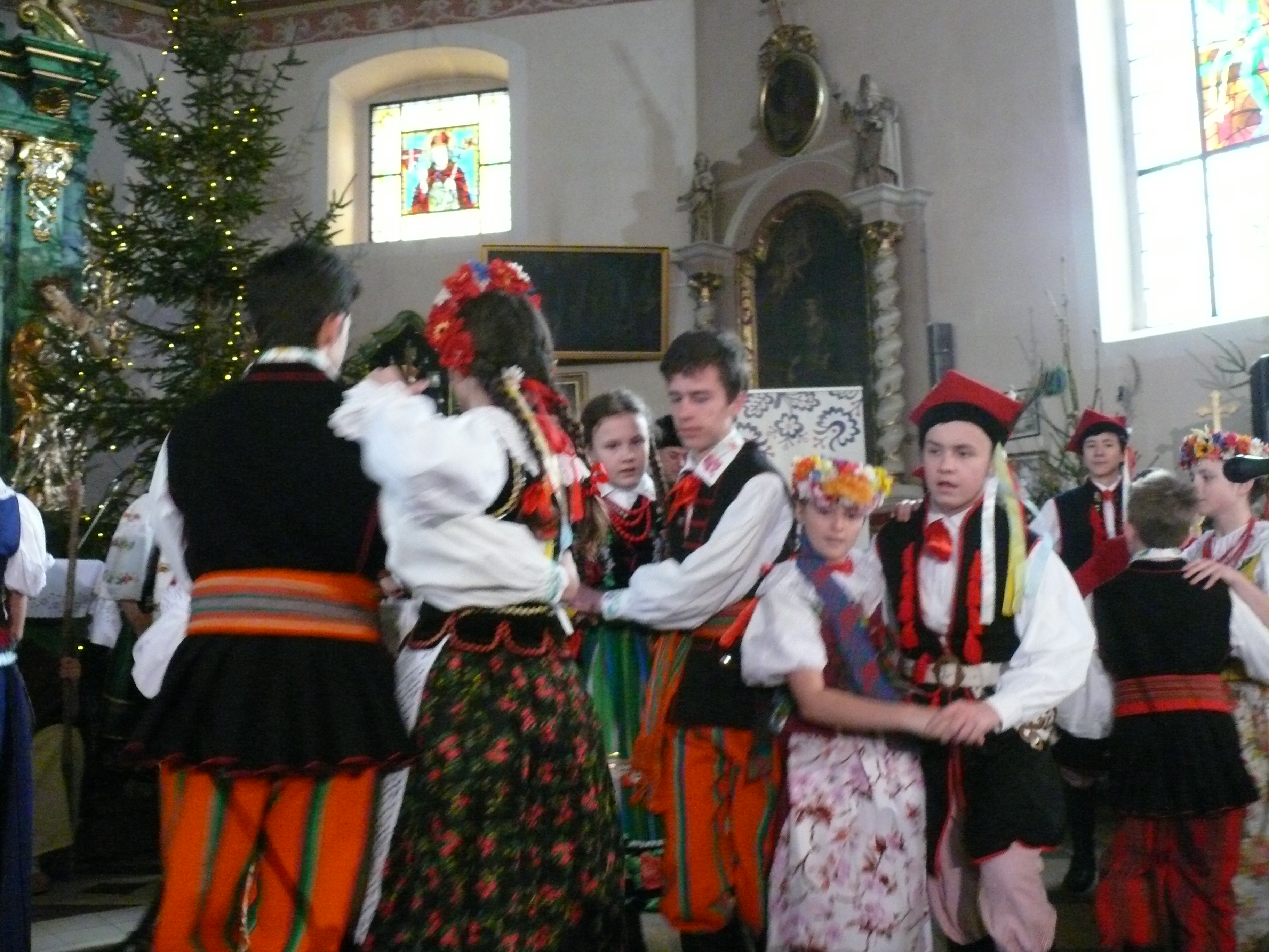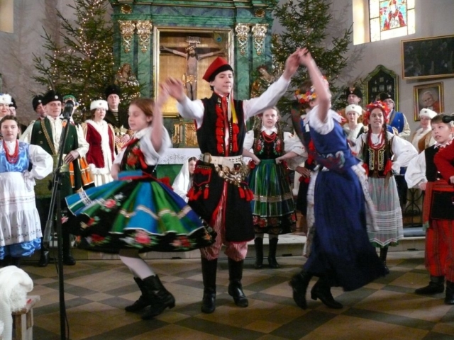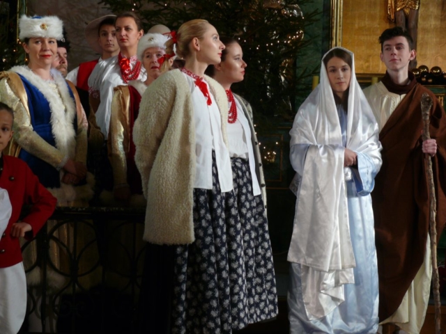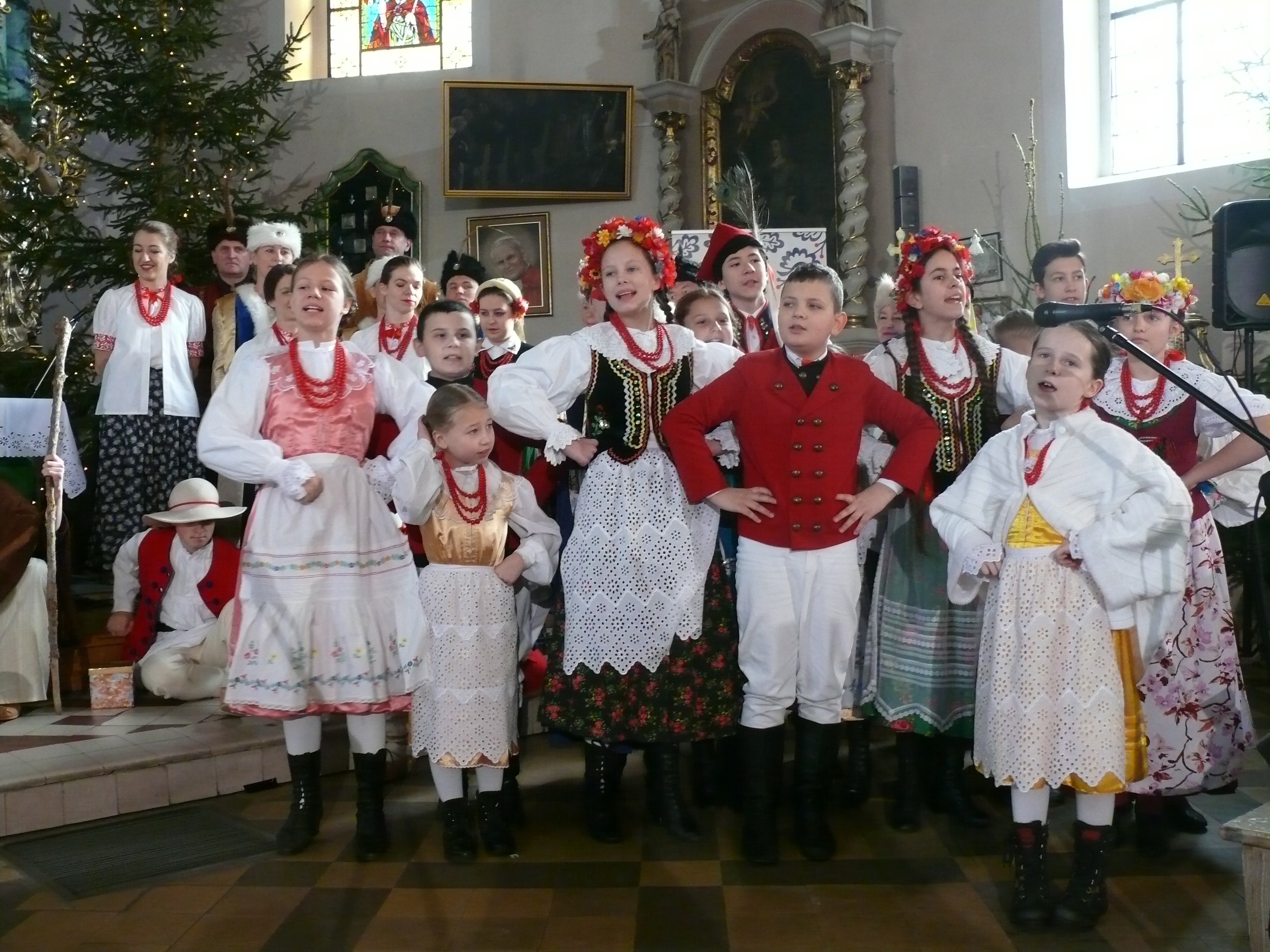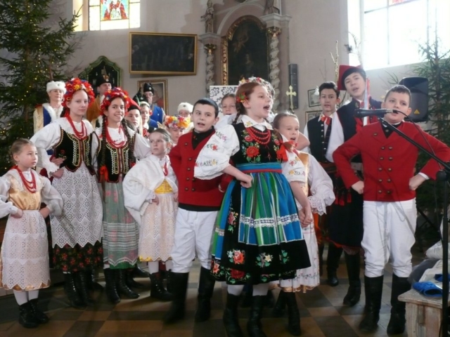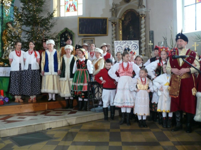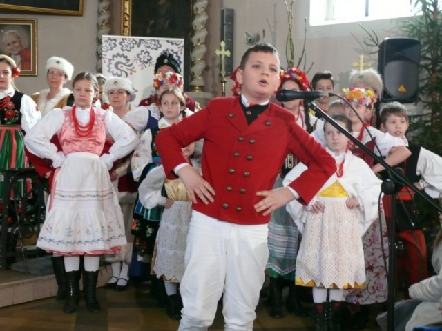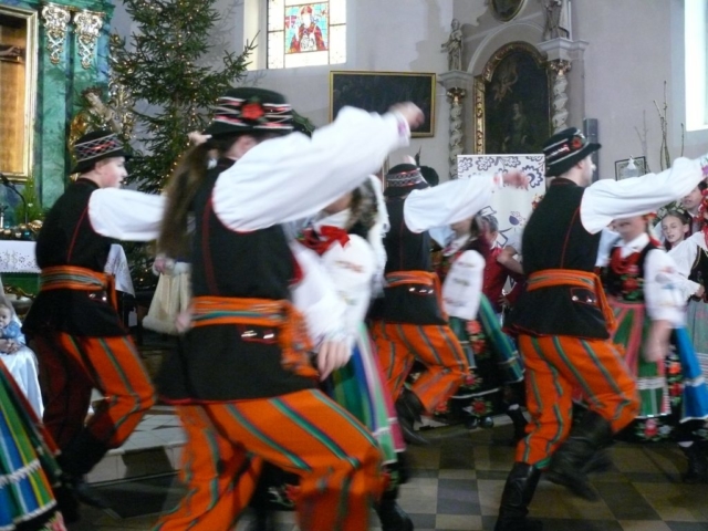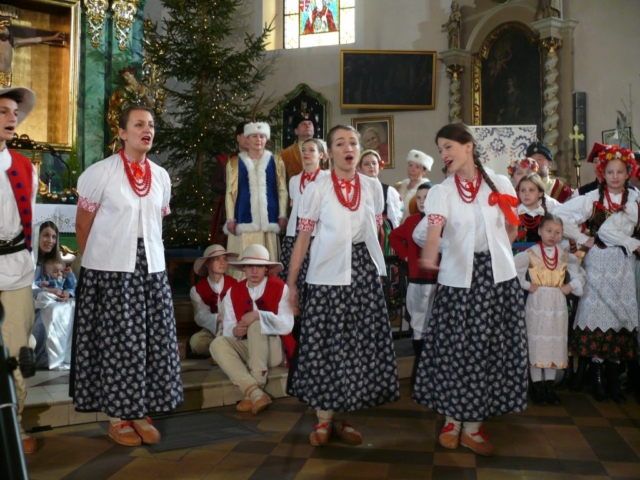 21 stycznia 2018 mieliśmy przyjemność wystawiać nasze jasełka w parafii pw. Podwyższenia Krzyża Świętego w Cerekwicy. Również tym razem cały zespół wziął udział w niedzielnej Eucharystii. Oprawą muzyczną Mszy świętej zajął się nasz chór Cantus Familiaris, którym dyrygował oczywiście Łukasz Maciejewski. Kościół parafialny wypełniony był po brzegi i publiczność cudownie reagowała na nasze kolejne tańce, przyśpiewki ludowe i tradycyjne kolędy. Na widzów tym razem czekały dwie niespodzianki. Nasza kapela wzbogaciła się o kolejną parę skrzypiec, a w rolę maleńkiego Jezusa wcielił się roczny Wiktor, który właściwie od urodzenia towarzyszy naszym koncertom i obozom.