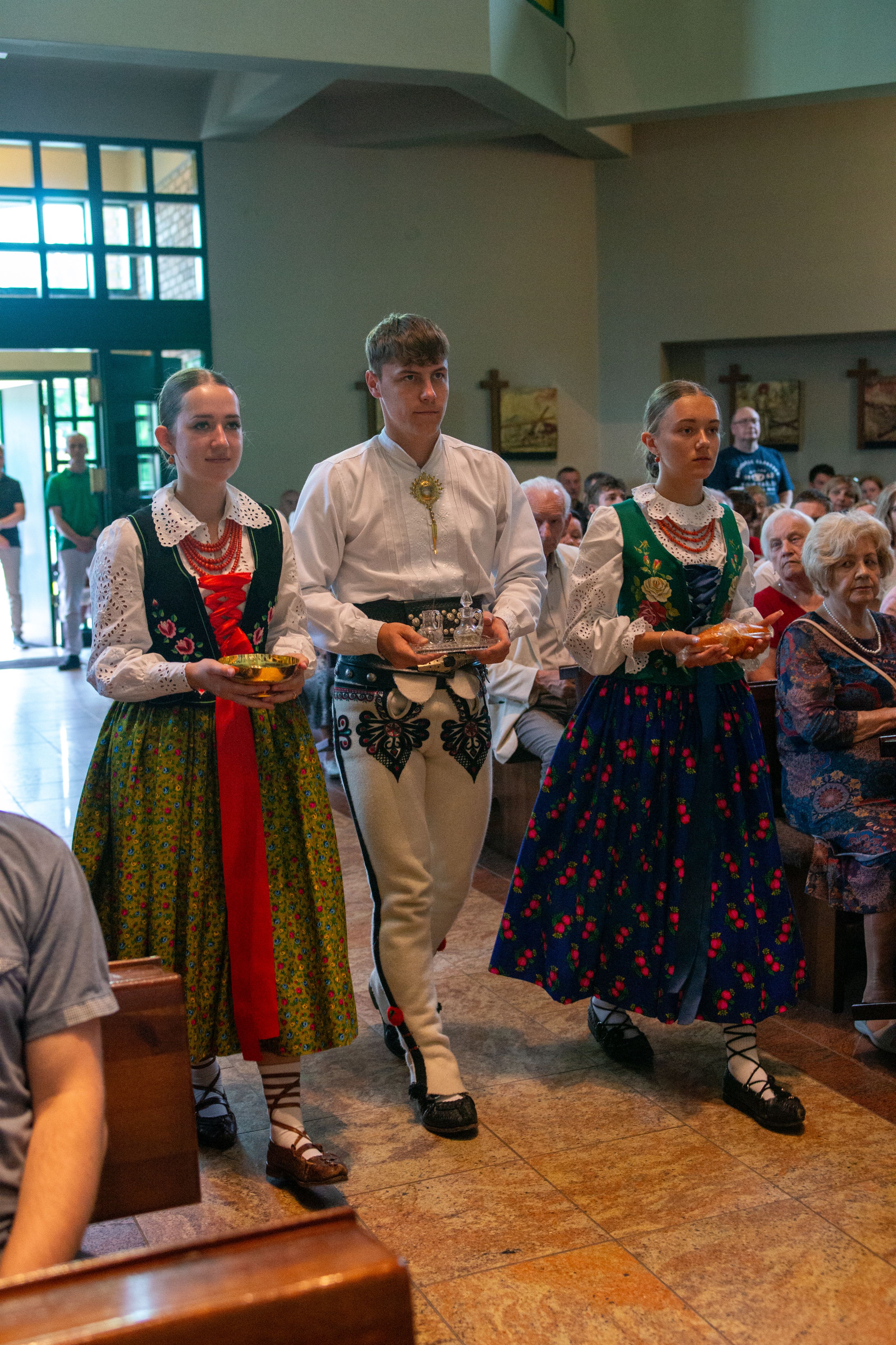 Niedziela była dniem finału Chludowskich Spotkań z Folklorem. O godzinie 10:00 wzięliśmy udział w uroczystej Mszy Świętej w sucholeskim kościele, a po niej wystąpiliśmy na placu przed kościołem.